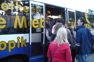 en Jeugd-Punt een flyer- en blaasactie onder zo’n 60 jongeren die met de Manebrugbus mee gingen.