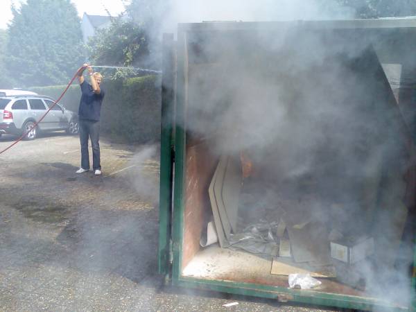 Na heldhaftig optreden van o.a. Marcel Scholtens (van de firma Compuexert en de brandweer van Montfoort, is het vuur bedwongen.