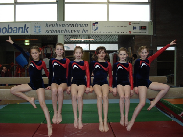 Turncompetitieteam v.l.n.r. Ella en Iris Holleman, Arianne in 't Veld, Imogen Beard, Anne Versloot en Kiki van Dijk.
