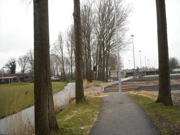 En passant zijn er ook nog enkele bomen omgehaald, dit was nodig om het voetpad genoeg ruimte te geven.