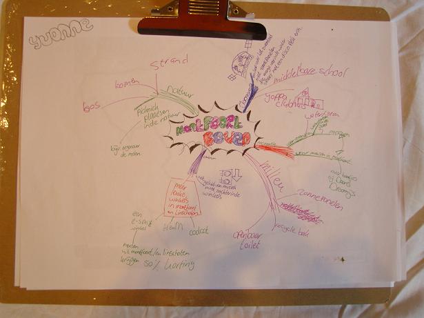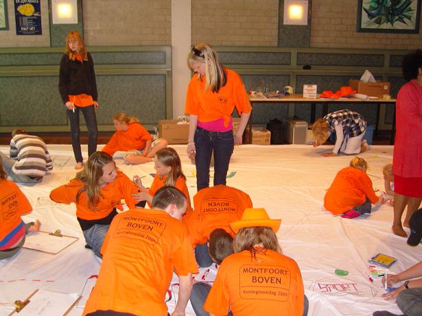 Vorige week tijdens Koninginnedag organiseerde jongerenvereniging YOPPA een activiteit voor jongeren in de leeftijd van 12 t/m 20 jaar om hun visie te geven over het gebied en de voorzieningen in de gemeente Montfoort. 35 jongeren hadden de stoute schoenen aangetrokken en hieraan deelgenomen. Zeker met het mooie weer vonden de jongeren deze binnenactiviteit toch uitdagender. Aan de hand van luchtfoto’s, oude kaarten en verhalen werden zij geïnspireerd om ook na te denken over landschap, toerisme, milieu en infrastructuur. De uitwerking van de ideeën werden gevisualiseerd door het maken van een MINDMAP op stof van 10 bij 10 meter. Alle ideeën konden op het doek worden getekend met textielstiften.