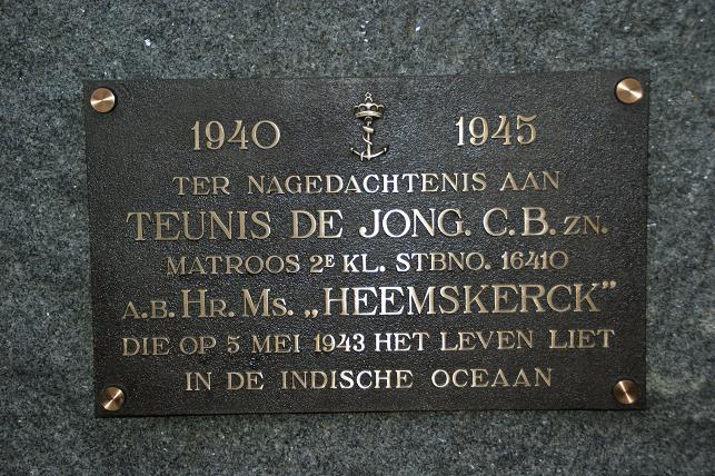 Na de twee minuten stilte volgde er een stille tocht naar de Hoge Werf voor de bloemlegging bij de gedenksteen ter nagedachtenis aan Linschotenaar Teunis de Jong. Als matroos tweede klasse aan boord van de Hr. Ms. ‘Heemskerck’ liet hij op 5 mei 1943 het leven in de Indische oceaan. Gezamenlijk werden er nog twee coupletten van het Wilhelmus gezongen.