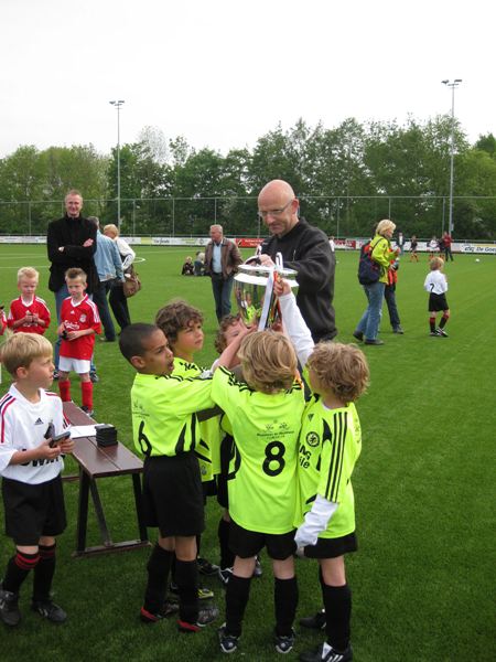 De 5 "mannen" van coach Bart Hornman konden dan ook hun geluk niet op toen ze uiteindelijk de de trofee kregen uitgereikt door jeugdvoorzitter G. Klein.