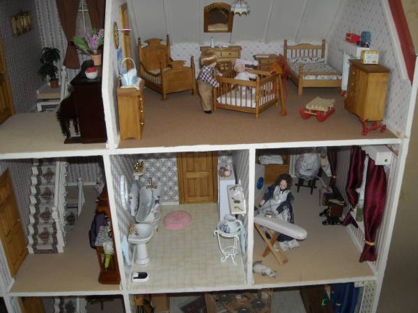 Na zijn pensionering kreeg hij meer tijd voor zijn hobby: poppenhuizen maken en inrichten. De creatieve familie vulde zijn kunstwerken aan met schitterende houten meubeltjes en bewoners. Corrie: “Ik had zo’n klein elektrisch tafelzaagje waarmee ik de meubeltjes maakte, een handig ding.”