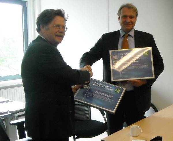 Geplaatst op:07-07-2010 Bijgewerkt op:07-07-2010 19:41 Montfoort kwikvrij en groenBron: Nettie Kuijer, redactie RSMWoensdag 7 juli ontving wethouder van Beers uit handen van Geert Meijer, directeur CityTec, de certificaten 'kwikvrij' en 'groene stroom.' CityTec, een onderdeel van Eneco, beheert de openbare verlichting in o.a. de gemeente Montfoort.