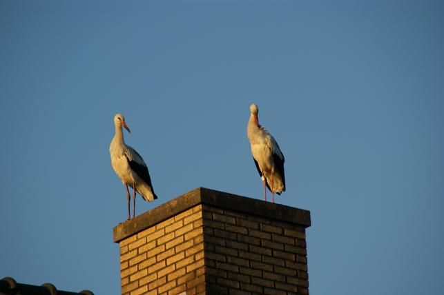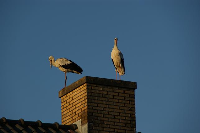 De ooievaars (wel meer dan 10 stuks) waren al eerder op een andere plek in het dorp gezien.