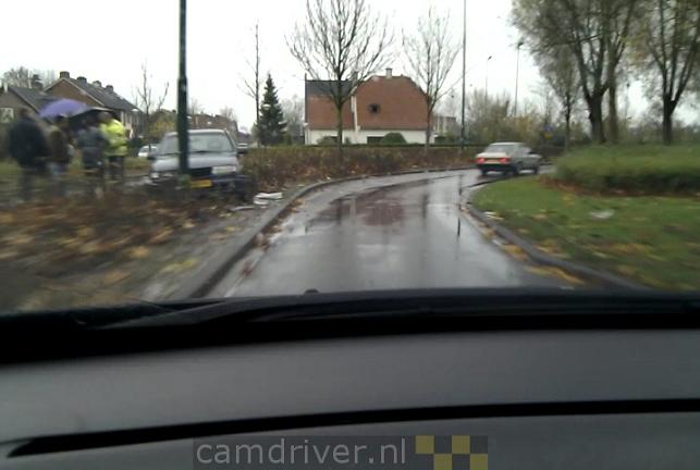 Het ongeval gebeurde net na een behoorlijk scherpe bocht. De auto en de lantaarnpaal raakten allebei zwaar beschadigd.