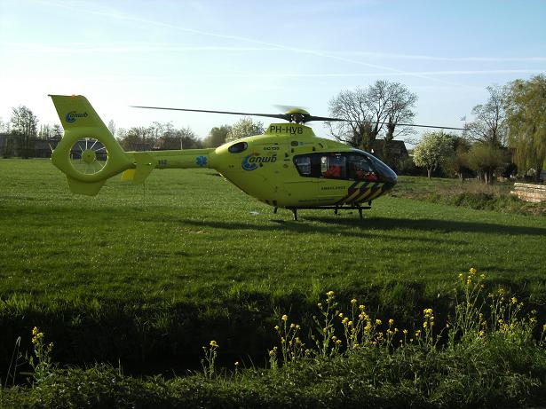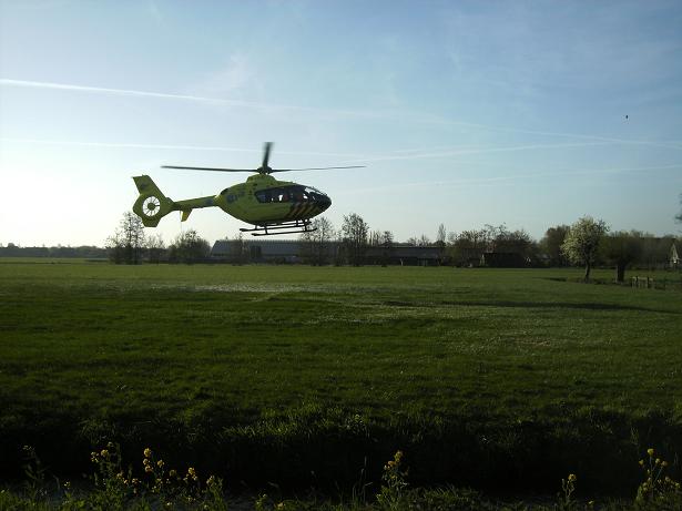 De traumahelikopter landde in een weiland aan de Lage Kade.