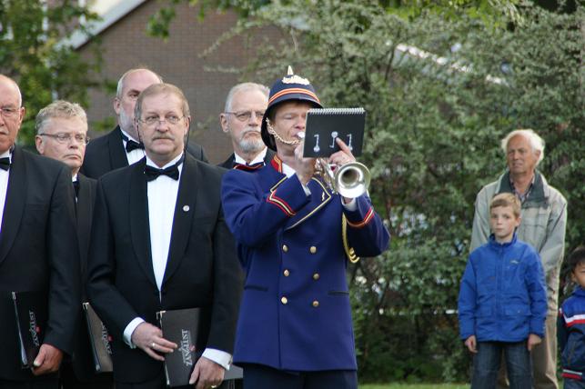 Daar werd door dhr. Vergeer, van muziekvereniging Linfano, ‘The Last Post’ geblazen.