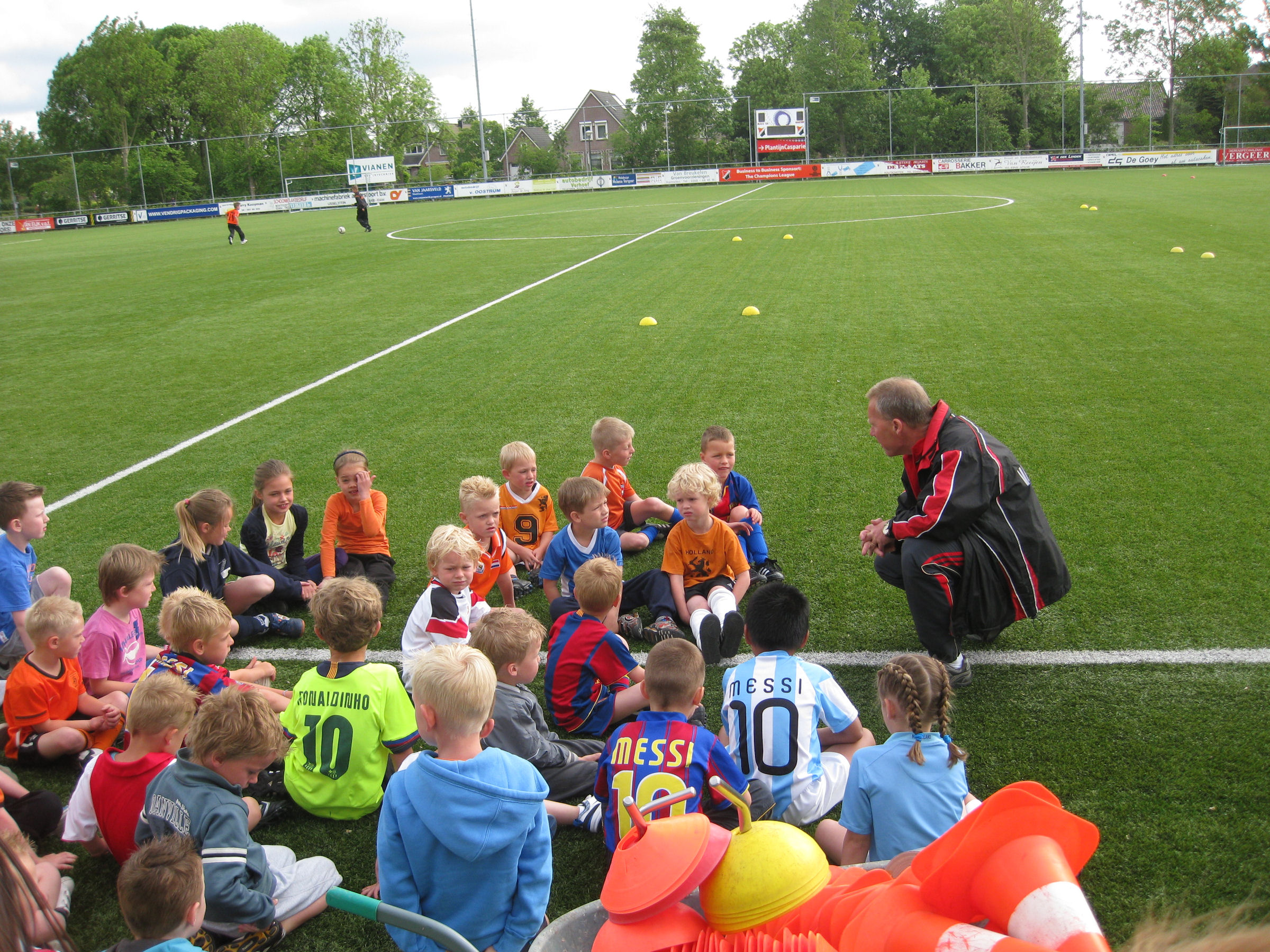 Het weer was fantastisch en ruim 35 kinderen waren naar sportpark Hofland gekomen om onder toeziend oog van enthousiaste ouders en opa’s en oma’s hun voetbalkunsten te vertonen.
