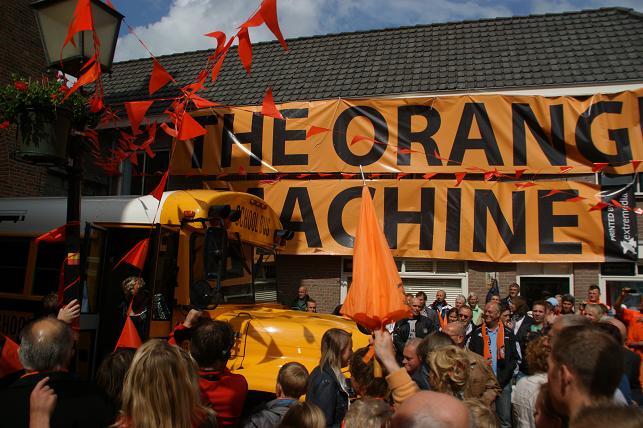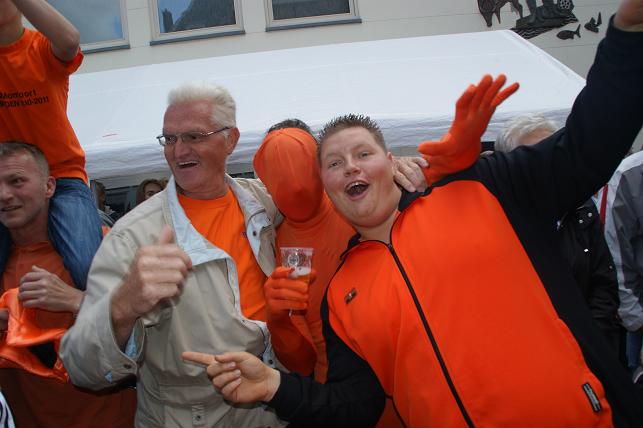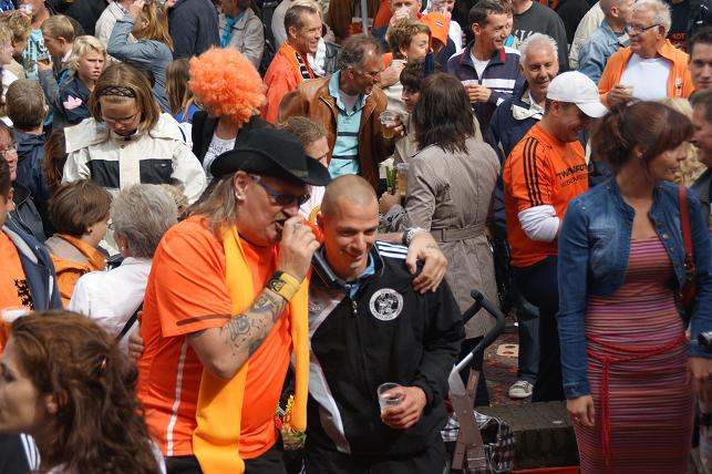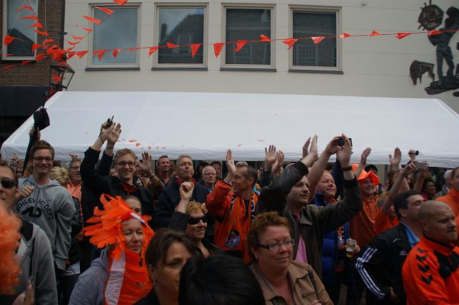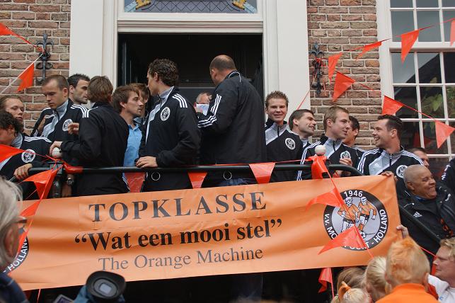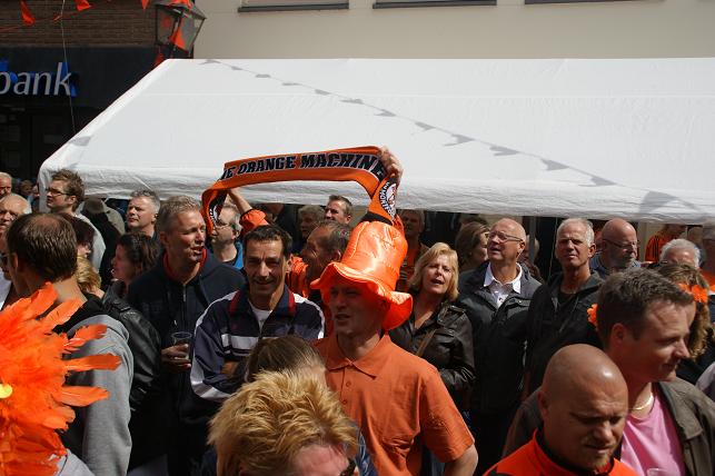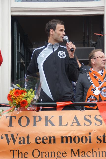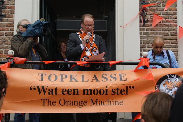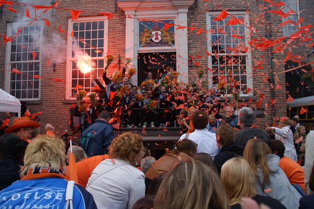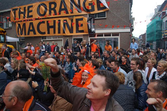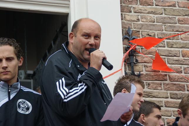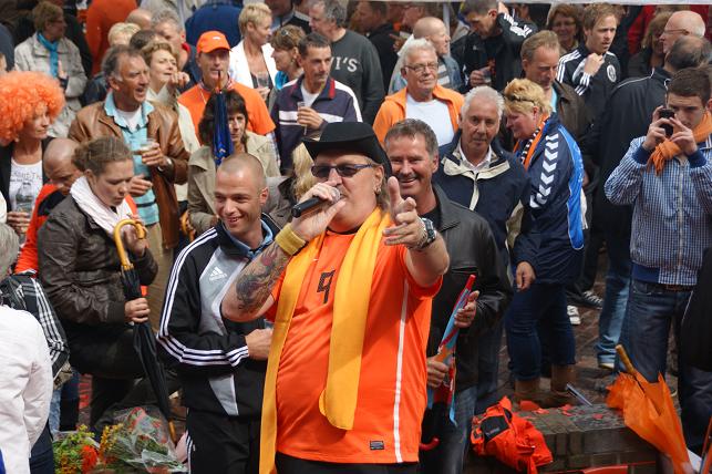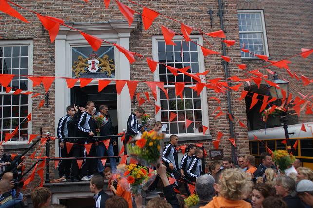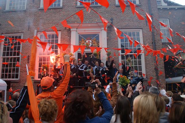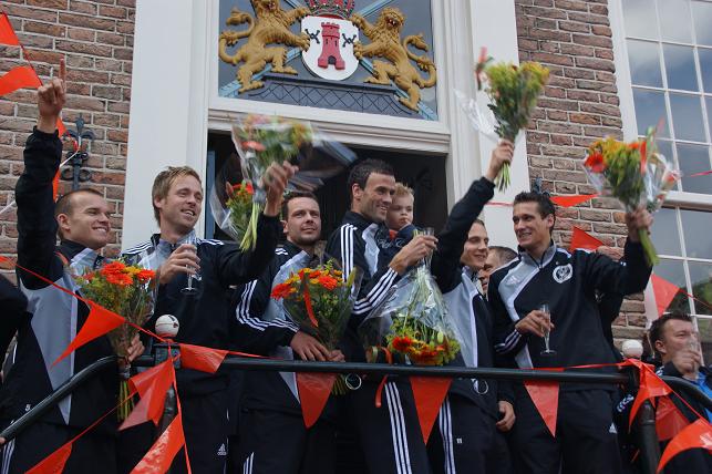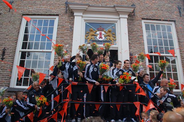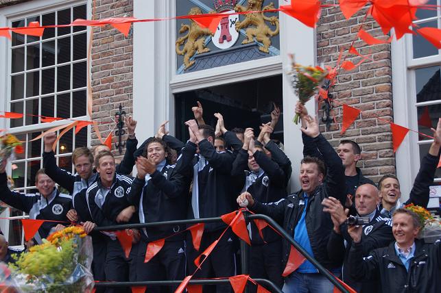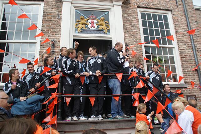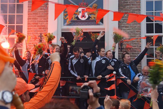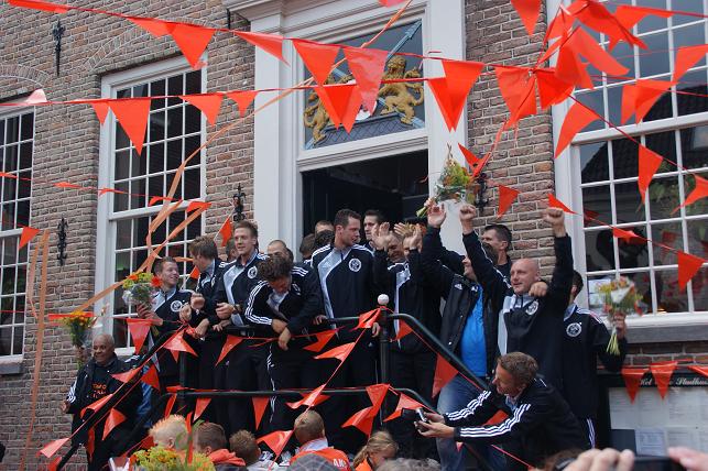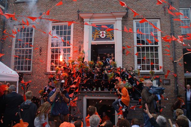 Het werd één groot feest op en rondom het bordes. Torres Blues zong het clublied 'The Orange Machine'.
