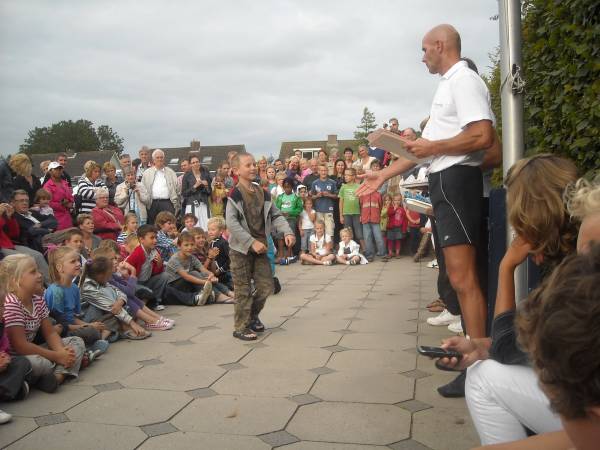 In badkleding: 7 meter onder water zwemmen gevolgd door 125 meter schoolslag en 75 meter rugslag.