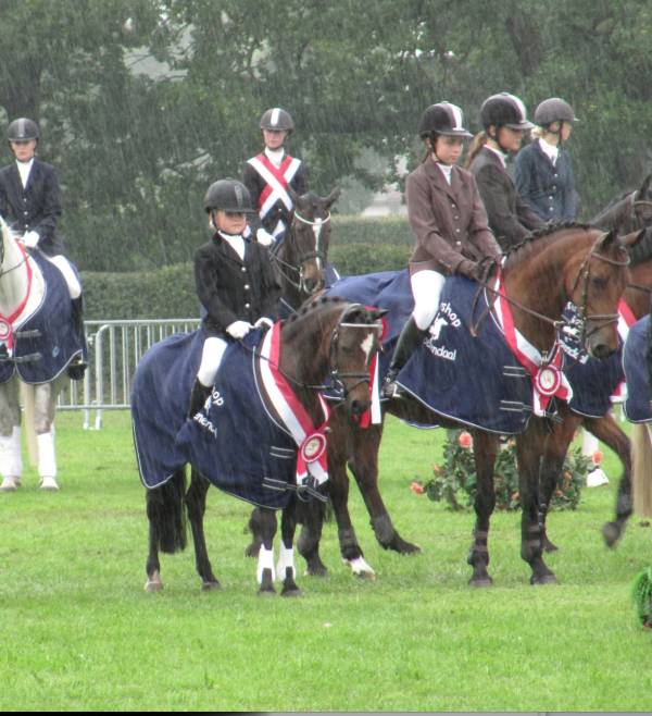 Amy Tewis verdiende met Roxi als individueel kampioen naast de kampioenslinten ook een prachtige statiedeken | Het spannendste van de dag was misschien wel de huldiging van alle kampioenen van de provincie Utrecht. En hoewel de regen op dat moment werkelijk met bakken uit de hemel kwam, was het voor deze vier jonge meisjes een mooi moment toen ook voor hen het Wilhelmus klonk. Een prachtige afsluiting van twee mooie dagen paardensport.