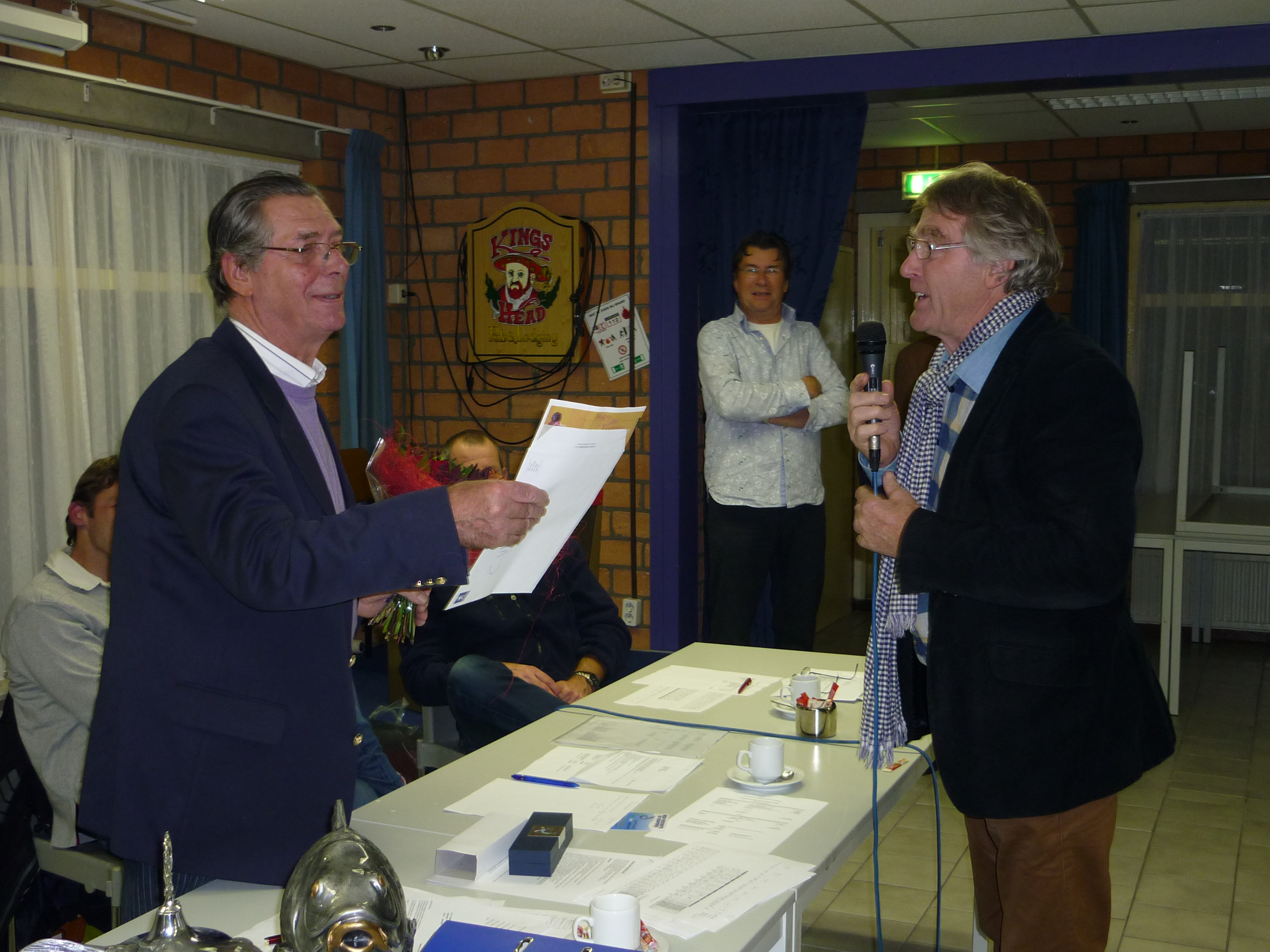 Zijn eerste daad als voorzitter was, nadat hij Cees nogmaals bedankte voor het vele werk, zowel binnen, als buiten de vereniging , dat hij hem mocht benoemen als ere-lid van de Hengelsport Vereniging Montfoort.