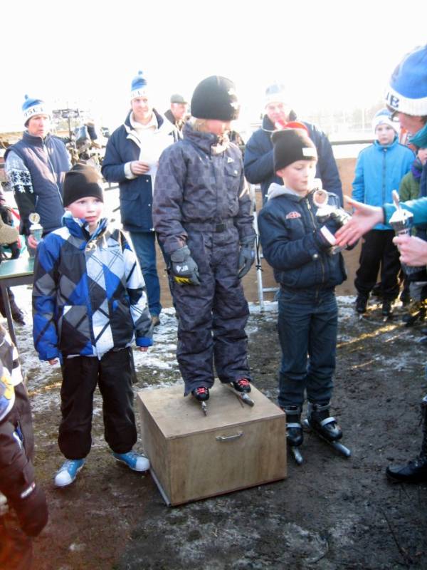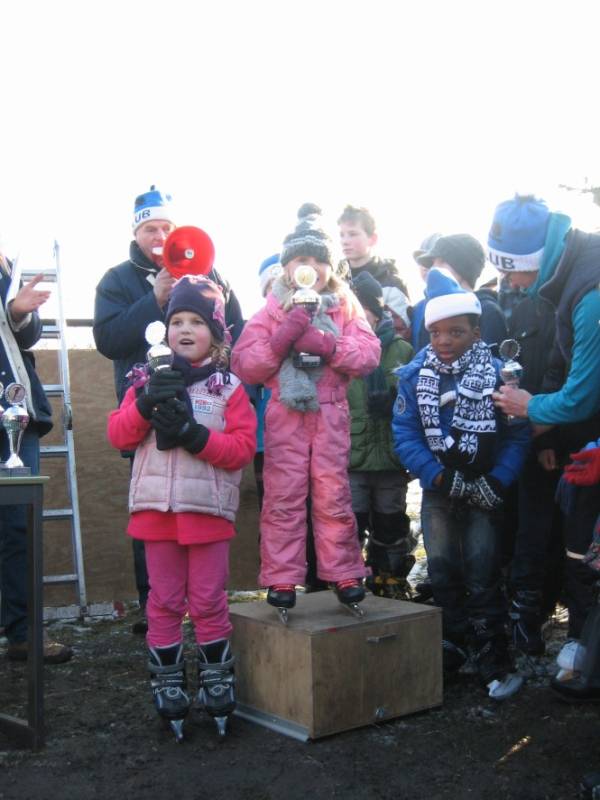 Als eerste werden de 4- en 5 jarigen weggeschoten. Vervolgens startten er nog drie groepen in de leeftijd van 6-7, 8-9 en 10-11-12 jaar. Oude schaatsen, nieuwe schaatsen, noren, kunstschaatsen, hockeyschaatsen etc., we hebben ze allemaal gezien.