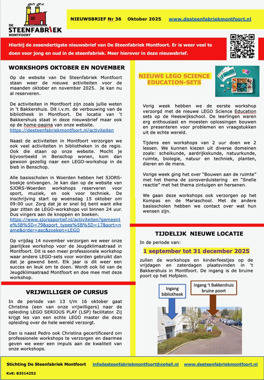 36e NIEUWSBRIEF van de stichting De Steenfabriek Montfoort