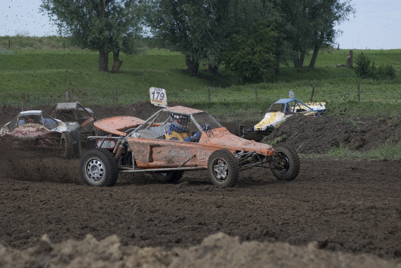 opspattende stukken zand en modder, want dat is een gegeven bij een autocross.