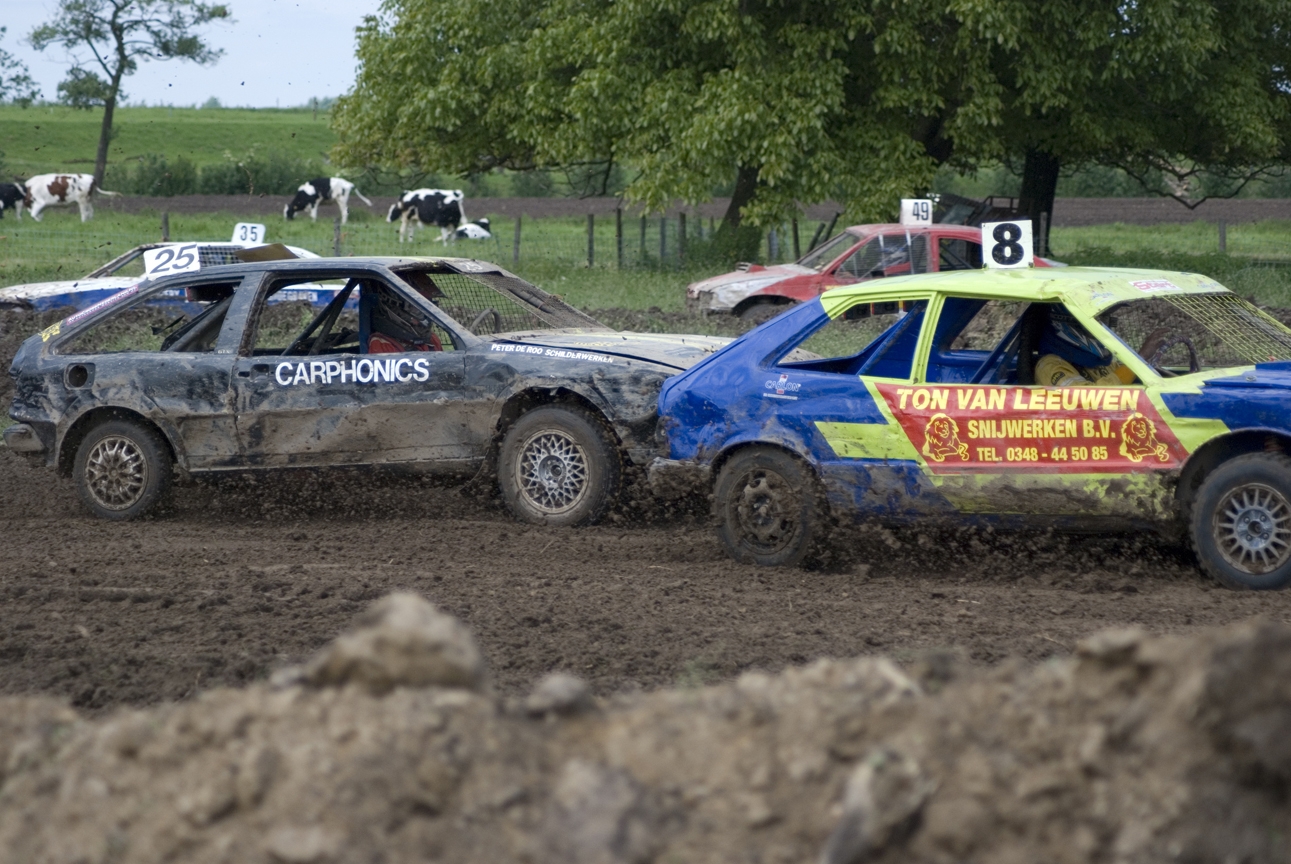 Tussen de wedstrijden door werden de crosswagens zo goed en zo kwaad als het ging