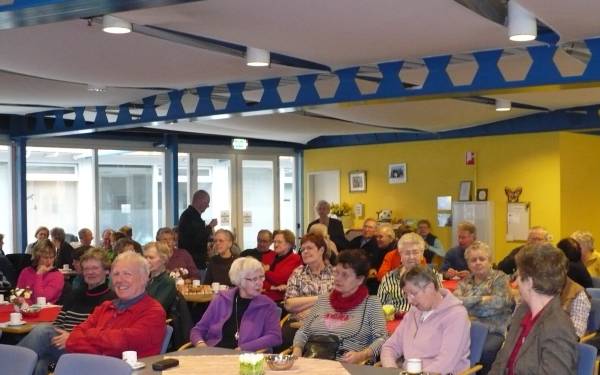 Zo'n 70 belangstellende 45 plussers verzamelden zich 6 maart in Antoniushof, waar GGD en DVN voorlichting gaven over diabetes, leefstijl en voorkomen van diabetes.