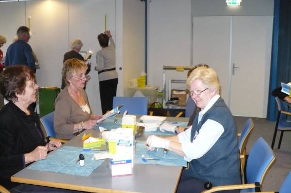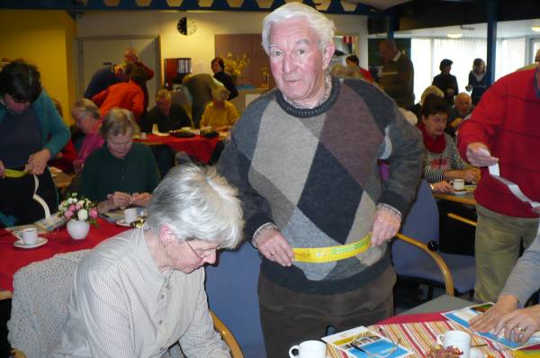 Met veel gelach werd de risicotest ingevuld, waarbij o.a. de buikomvang moest worden gemeten. Er was een Leefstijlmarkt, de bloedglucosewaarde werd gemeten, het gewicht en lengte.