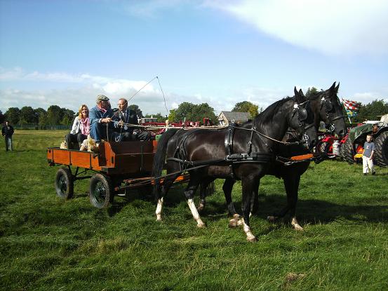 Zaterdag kwam burgemeester Jansen het oogstfeest openen d.m.v. een kleine toespraak in de tent. Waarna hij met paard en wagen een rondrit maakte over het terrein, om al die mooie machines te bekijken.