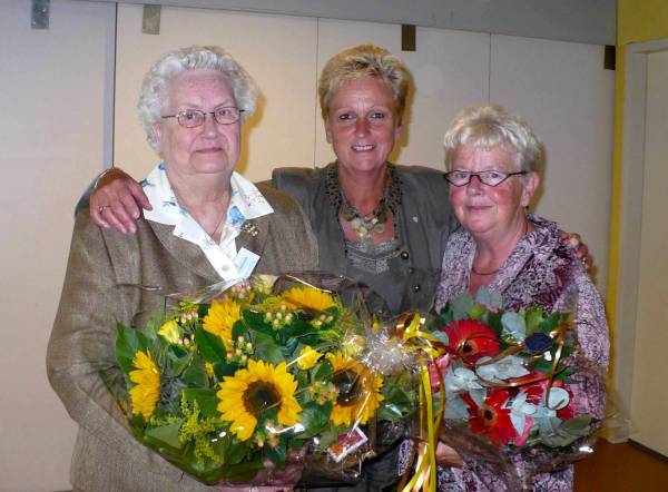 Drie jubilarissen werden gehuldigd , zij zijn al respectievelijk 10- en 25 jaar vrijwilliger bij de Zonnebloem.