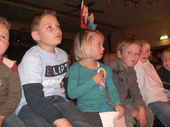 De stemming zat er goed in bij de kinderen.Zij zongen de liedjes uit volle borst mee.