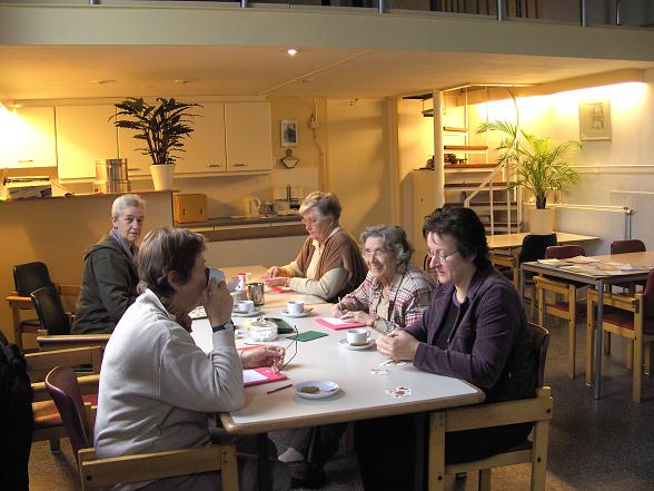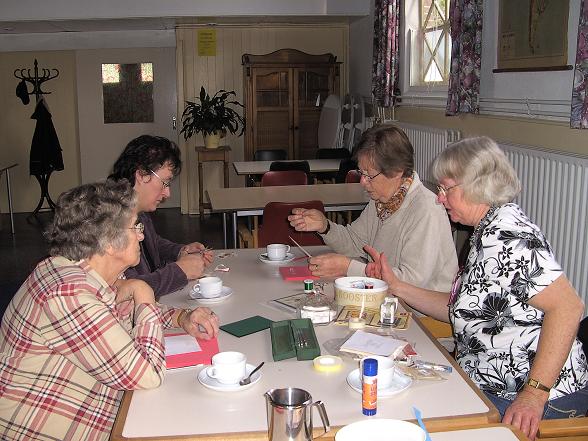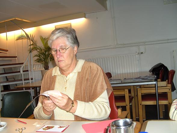 Onder leiding van Nel van den Brink ging men aan de slag. Er werd druk geknipt en geplakt. Men ging aan het eind van de ochtend met mooie kerstkaarten de deur uit.