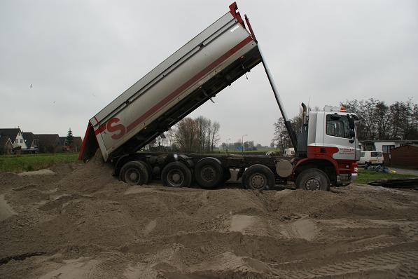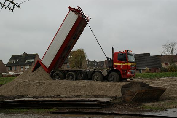 Het was een komen en gaan van vrachtwagens met zand naar de Jacob Barneveldstraat.
