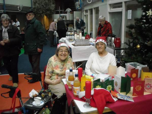 In het atrium van Antoniushof kon men zich opwarmen bij de oliebollen. De keuze aan kerststukken kaarten en decoraties, was subliem. En er konden zelfs kerstballen worden geruild.