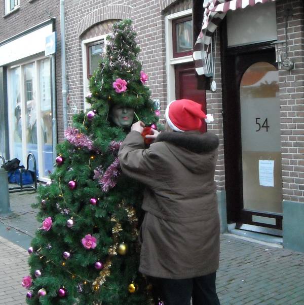 Een beetje drinken voor een dorstige kerstboom..
