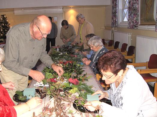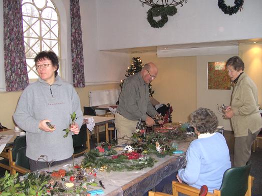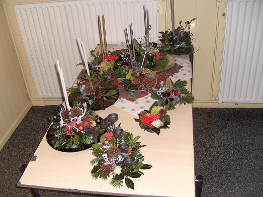 Onder leiding van dhr. van Leeuwen ging men aan de slag om een mooi kerststukje te maken.