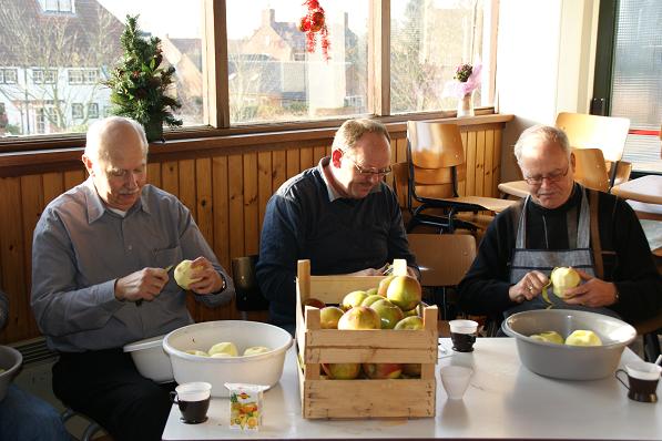 Zaterdag 27 december was het een gezellige drukte in de kantine van de houthandel in Linschoten. Leden van het mannenkoor Zanglust en enkele familieleden offerden hun vrije middag op om zo'n 700 kilo appels te schillen. Hier worden uiteindelijk zo'n tien- tot twaalfduizend appelflappen van gemaakt. Dit als voorbereiding op oudejaarsdag. Als vanouds kunnen de inwoners van Linschoten en omstreken op 31 december vanaf 8.30 uur tot 13.00 uur overheerlijke oliebollen en appelflappen kopen (zolang de voorraad strekt) bij de kramen in de brandweergarage, en voor de supermarkt. De vroege vogels kunnen vanaf 03.30 uur al terecht bij de apparatenfabriek aan de Laan van Overvliet.