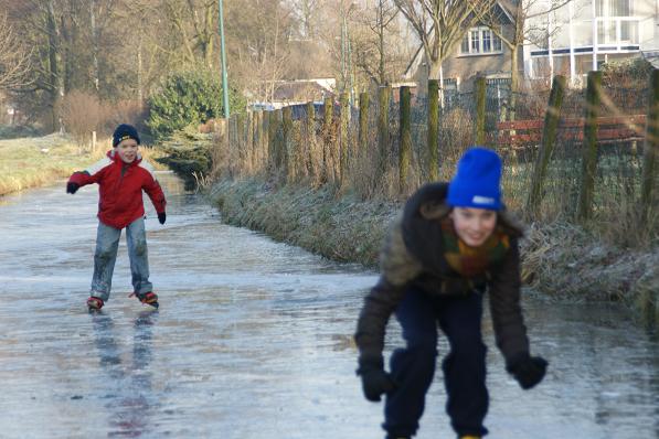 Lekker schaatsen op de sloten langs de M.A. Reinaldaweg.