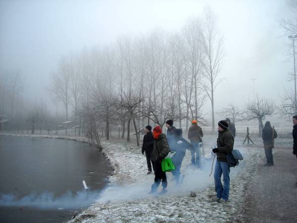 Vuurwerk in het park, en gelijk het ijs even testen.