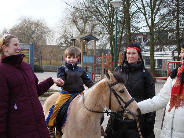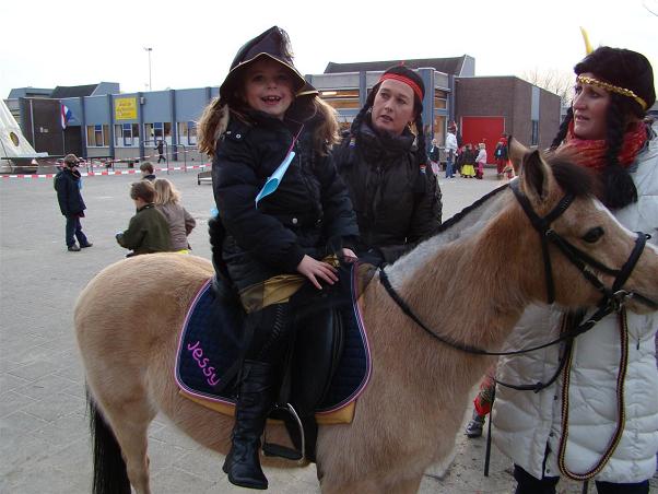 Afgelopen vrijdag 16 januari hield de Graaf Jan van Montfoortschool het jaarlijks Graaf Jan Feest. De hele school was voor deze heugelijke dag omgebouwd tot een heus Indianendorp. Alle kinderen en leerkrachten waren verkleed naar school gekomen. Al vroeg in de ochtend rees op het schoolplein een grote tipi op, waar de kinderen naar hartenlust in konden springen op het ingebouwde springkussen. De jongere kinderen mochten, zoals het een echte indiaan betaamt, pony rijden op het schoolplein. In de school was het een waar feestfestijn. In ieder lokaal konden de kinderen leuke spellen doen zoals Indianentennis, totempaalbouwen, ballontrappen, Indiaantje-prik of bibberspiraal. Ook konden de Indianenspierballen getest worden met spijkerslaan en er ontstond zelfs een spannende competitie 'spijkerbroekhangen'. Van al die gezellige spellen kreeg ieder natuurlijk Indianenhonger en -dorst. Natuurlijk hadden de squaws van school gezorgd voor Indianenlimonade, een totempaalsnack en een broodje met knakworst zodat alle hongerige Indiaantjes weer snel door konden gaan met feestvieren.