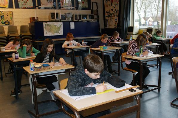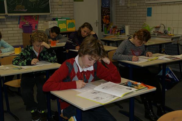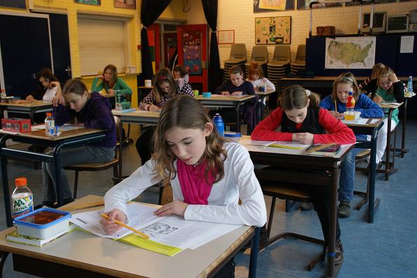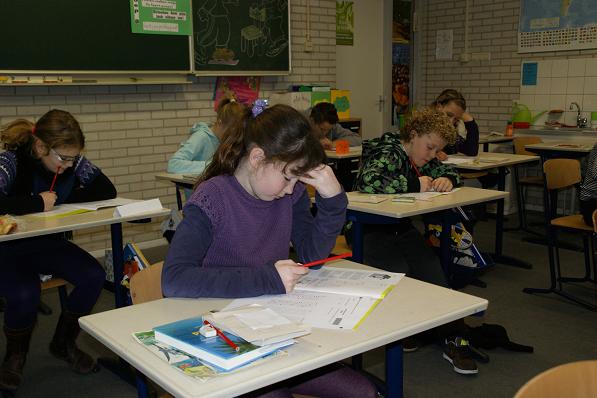 Leerlingen van de Timothesschool druk bezig met de Citotoets.
