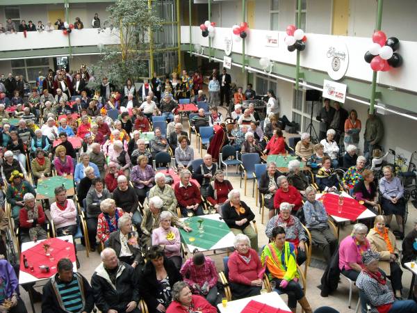 Zaterdag 14 februari organiseerde Les Boutonniers weer een groots seniorencarnaval in het atrium van Antoniushof. Een keur van artiesten trad voor het voetlicht, met als grote publiekstrekker natuurlijk Saskia en Serge.