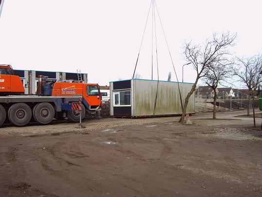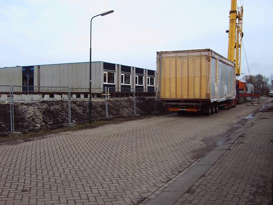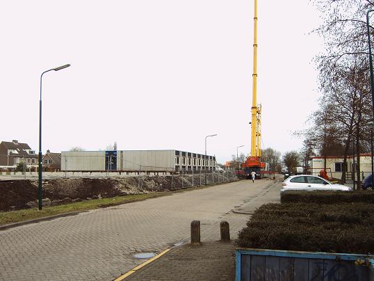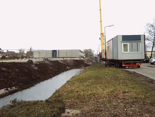 Donderdag 26 februari werd een begin gemaakt met het plaatsen van de noodlokalen voor de tijdelijke school in Linschoten.