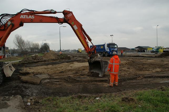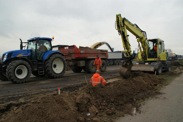 Het is rustig op de M.A.Reinaldaweg in Linschoten. De anders zo drukke weg is afgesloten voor doorgaand verkeer. De werkzaamheden zijn begonnen om van het kruispunt bij IJsselveld een dubbelstrooksrotonde te maken, ook wel turborotonde genoemd. Ook wordt naast de rotonde een gedeelte van de nieuwe parallelweg aangelegd.
