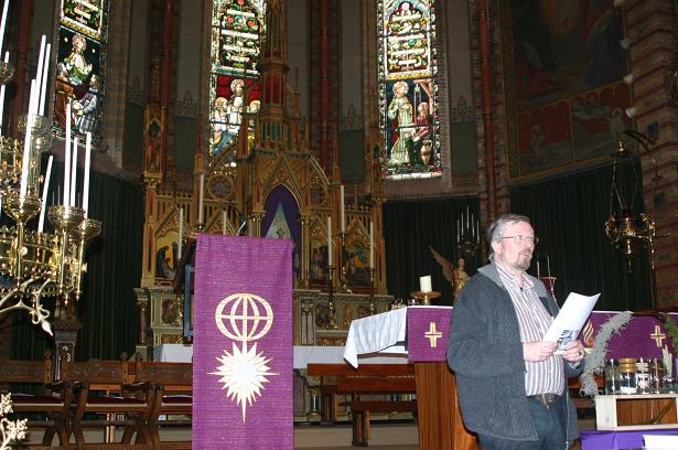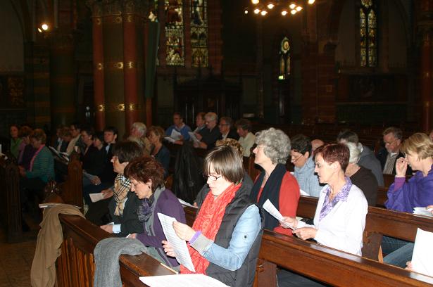 Uit de hele regio, maar ook uit Engeland, waren zaterdag 4 april liefhebbers van koormuziek naar de St. Franciscuskerk in Oudewater gekomen om met elkaar Passiemuziek te zingen. Onder leiding van dirigente Monique van den Hoogen en begeleid door organist Bas Verboom werd er gerepeteerd om een aantal koralen uit de Johannes en de Matthäus Passion onder de knie te krijgen. In een korte onderbreking van de workshop gaf pastor Martin de Korte een interessante uitleg over de symboliek welke traditioneel met Palmpasen te maken heeft. Na de pauze werden alle ingestudeerde koralen nog eens gezongen met begeleiding van het grote orgel. Wederom een zeer geslaagde middag. De volgende Zingende Zaterdag waarvoor nog inschrijving mogelijk is heeft een geheel ander karakter. Deze, met het thema "Varen over de Baren" zal plaatsvinden op zaterdag 23 mei tijdens een vaart op de ijsselaak "Den Onthaestingh". Voor info en opgave: www.dezangzaak.nl
