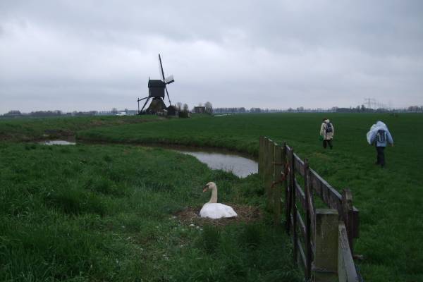 We liepen dit keer van Schoonhoven naar Sliedrecht, een tocht van ruim 24km door de Alblasserwaard. Veel graskades, hekjes, molens, striemende regen en weidse vergezichten, een typisch Hollandse wandeling.