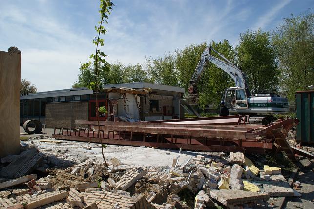 Deze sloopwerkzaamheden staan in verband met de bouw van de brede school.