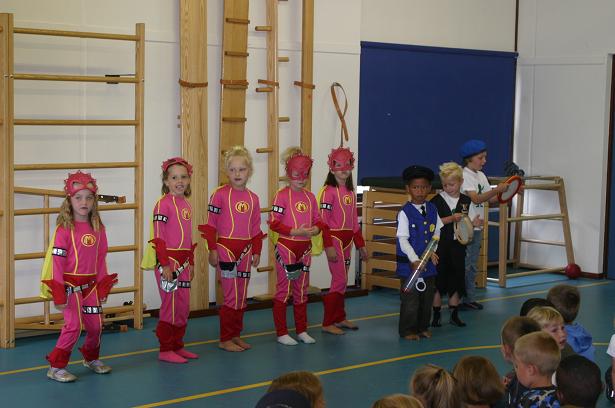 De oudste kleuters die na de vakantie naar groep drie gaan zorgden met een playback optreden voor het nodige entertainment voor ouders en grootouders. Ook de kleuterleidsters gaven daarbij een optreden van kabouter Plop.