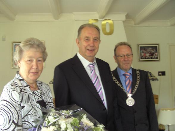 Burgemeester feliciteerde het jubilerende echtpaar.
