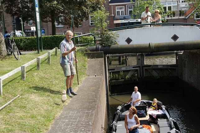 Donderdag 16 juli, een warme zomerdag. Overal is het rustig op straat, behalve bij de sluis in Montfoort.
