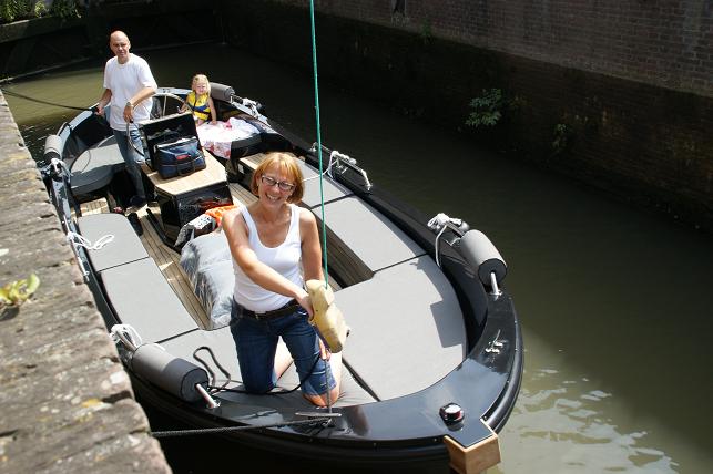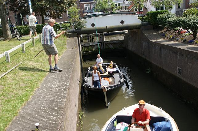Veel vakantiegangers zoeken ook deze dag weer verkoeling op het water. Dus dat betekent drukke tijden voor de vrijwilligers die om de beurt de sluis bedienen.