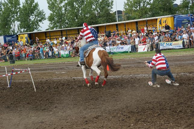 Tussen de wedstrijd door was er een show van het Trickriding Team, zij haalden stunts uit op hun westernpaarden.