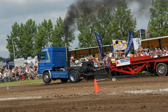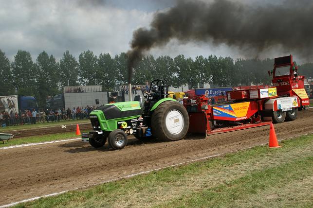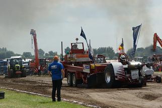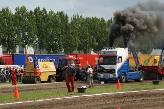 Dit was weer een groot spektakel voor jong en oud. Velen stonden langs de twee banen te genieten van de tractoren en trucks die met brullende motoren en zwarte rookpluimen meededen aan de wedstrijd.