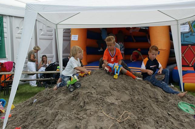 De jongste bezoekers vermaakten zich o.a. met traptrekkers, een zandbak, eurobungy en een trucksimulator. Deze dag werd afgesloten met een tentfeest.